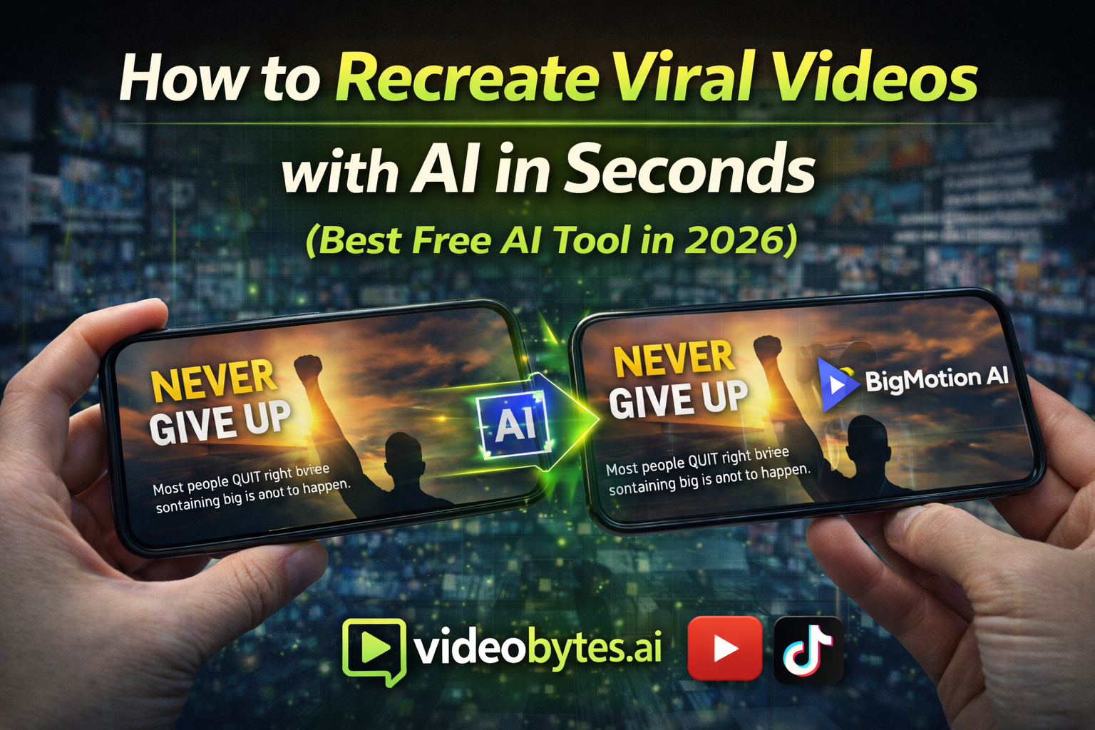 Videobytes.ai is a free AI video generator that helps creators, marketers, and businesses turn ideas into professional videos. Turn ideas, scripts, or links into scroll‑stopping short videos for TikTok, Reels & YouTube Shorts — no camera, no editing skills.